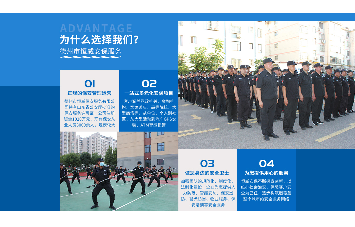 - 德州市恒威安保服務(wù)有限公司,注冊資金1020萬元。是經(jīng)山東省公安廳批準(zhǔn)、德州市工商管理局登記注冊、具有獨(dú)立法人資格的專業(yè)保安服務(wù)公司,下設(shè)10個職能科室和業(yè)務(wù)部...